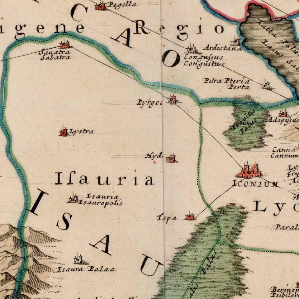 Scarce map of Central Turkey, with Ancyra (Ancora) in the upper left of the map and showing the early Roman and other road through the region.