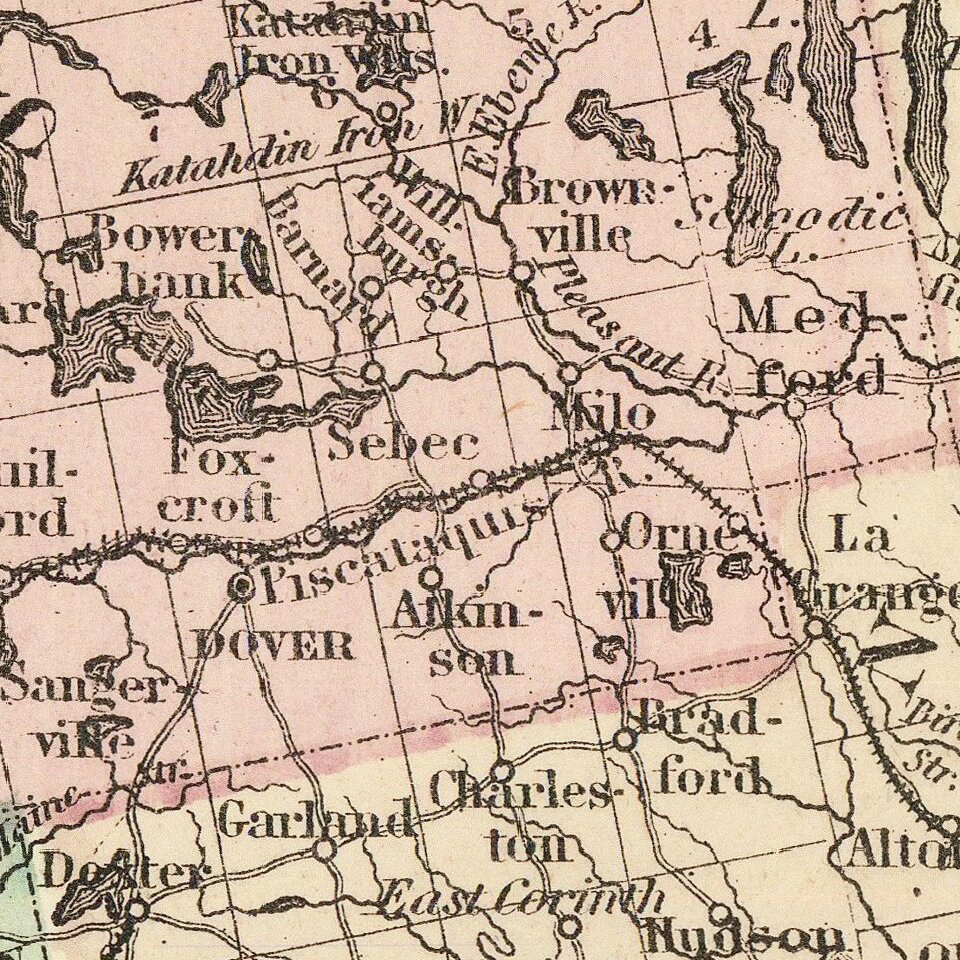 Beautiful and highly detailed map of Maine, colored by townships and showing outline borders for the counties.