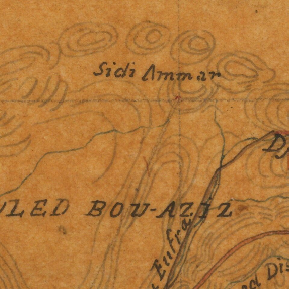 Striking collection of 46 manuscript maps, and a few documents, showing northern Algeria. The maps date from the French invasion of Algeria (1830-1847) and originate from Prince Ferdinand Philippe, Duke of Orléans, who most likely used them to prepare his history of the conflict. They represent a noteworthy body of knowledge about this significant episode in the history of Algeria and of the French Empire. The maps are predominantly written in French, with some items in Arabic. The collection includes subsets of maps focused on Algiers and its surroundings, and maps focused on northeastern Algeria. These particular areas were the site of intense fighting between the French army and Algerian resistance forces during the French conquest of Algeria. Maps in this collection include: Plans and views of Algiers Locations of French military encampments Strategic towns around Algiers including Blida, Medea, Kolea, and Boufarik Resistance-held towns across northern Algeria, including Constantine Major waterways, coastal areas, and routes between towns in northern Algeria This collection most likely belonged to Prince Ferdinand Philippe, the Duke of Orléans, the eldest son of the French King Louis Philippe I (r. 1830-1848). Prince Ferdinand Philippe spent most of his notable military career in Algeria. He then spent his post-military life compiling a history of the French conquest of Algeria and accounts of his military campaigns. When he died at the young age of 32, the collection would have stayed within the family, eventually finding a home in the library of Ferdinand’s youngest brother, Antoine, Duke of Montpensier.