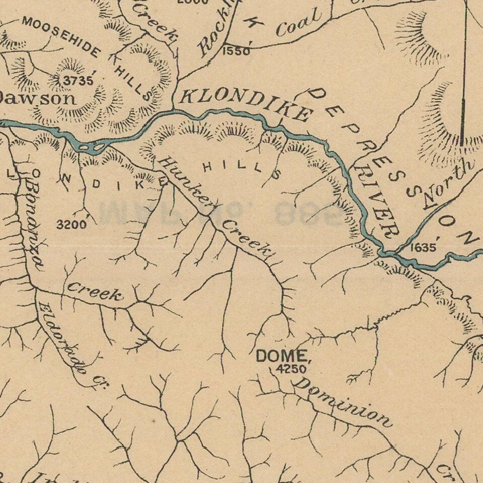 Detailed map of the Klondike Gold Region, centered on Dawson's and the Klondike River.