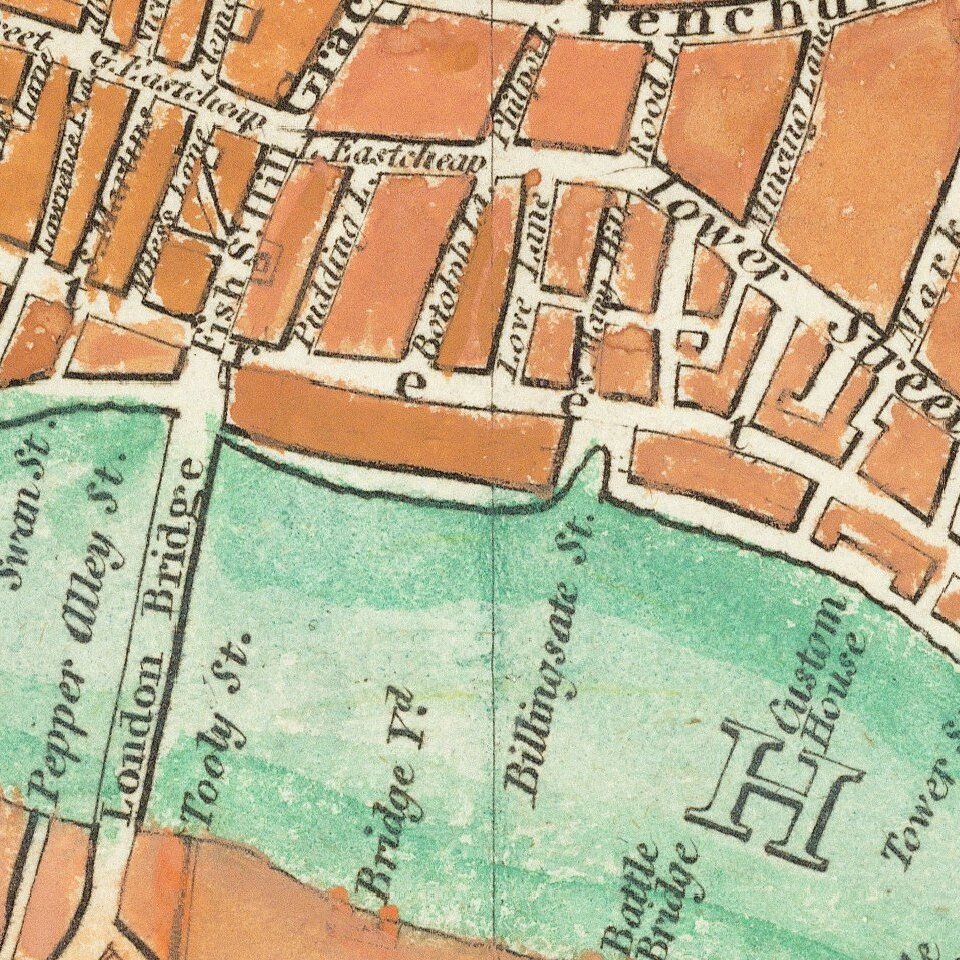 The map stretches from Hyde Park in the west to the East India Docks.
