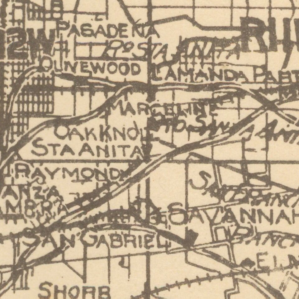 A number of early ranchos are shown. There is additional detail of surrounding counties including Ventura, Kern, San Bernardino and Riverside.