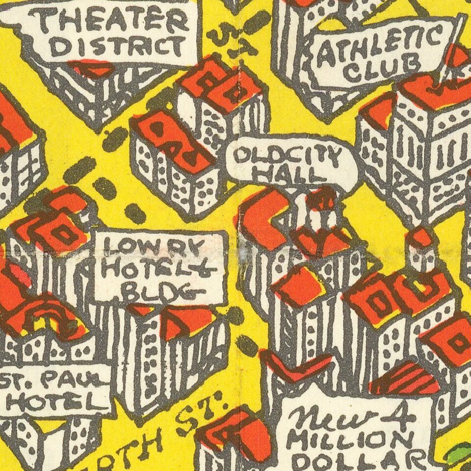 Scarce pictorial map of St. Paul, Minnesota, drawn by Richard Burbank for the Saint Paul Association of Commerce.