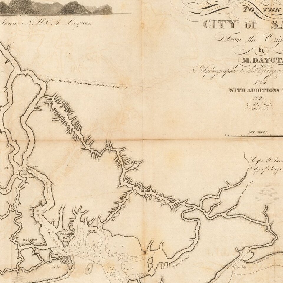 White's map improves on the mapping of the region by Jean Marie Dayot, drafted in 1790. The map also locates the Canal which at the time was intended to connect the Mekong Delta with the Dong-Nai, in an attempt to improve the commercial prospects of Saigon and the region.