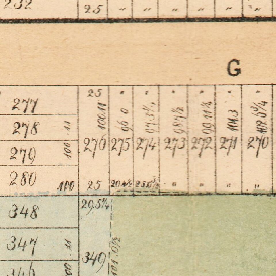 As with his other Manhattan neighborhood maps, Holmes shows old plots, roads, and buildings transposed over the developing grid of late-19th-century Manhattan.