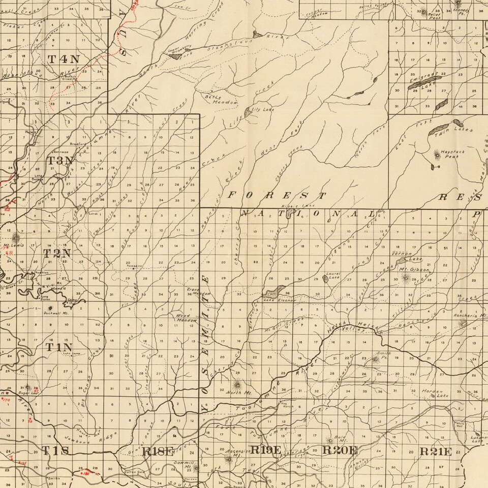 Scarce mining map of Tuolomne County, prepared by the California State Mining Bureau.