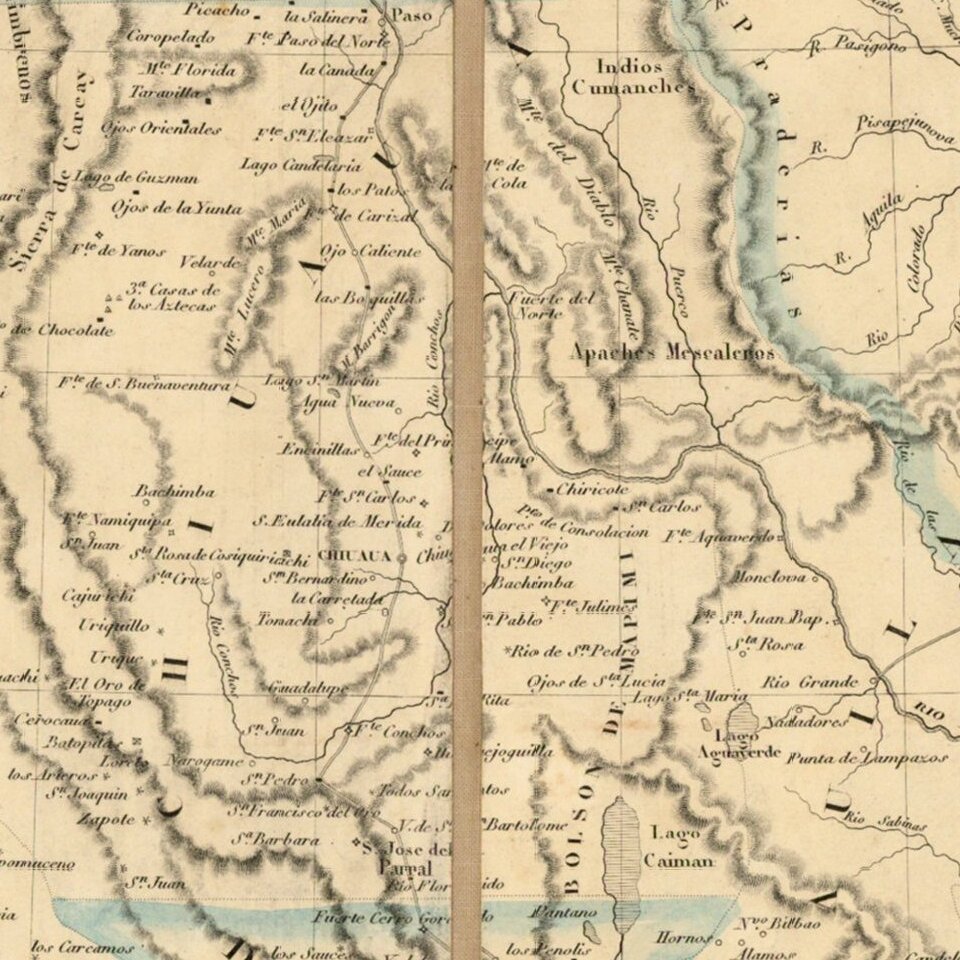 The library, prior to this acquisition, held editions of all the pertinent maps relating to the Treaty of Guadalupe-Hidalgo except the Rosa map. These holdings comprise a number of editions and states of the Disturnell map, the White, Gallaher and White map, and Henry S. Tanner's maps, including that map's cartographic sources. The addition of the Rosa map completes the sequence. The evolution of the treaty map is most important to the history of Texas and the United States, and especially to the history of the Mexican-American War of 1846-1848, the subsequent boundary disputes between the United States and Mexico, and the evolution of the boundaries of the state of Texas.While little is known about Rosa, his connection to the mapping of Mexico is quite clear. Rosa was the publisher of an edition of of Humboldt's Essai politique sur le royaume de la Nouvelle-Espagne in 1822 ( Ensayo politico sobre el reino de la Nueva-España. Traducido al español por Vicente Gonzalez Arnao) as well as other works on Mexico and Latin America from the 1820s to the 1850s. Tooley notes an edition of the map published in 1822, but his is almost certainly an error.