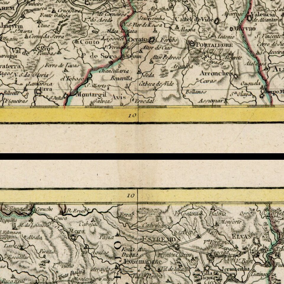 Scarce double page map of Portugal in original color, from Rizzi-Zannoni, the Royal Geographer of France.