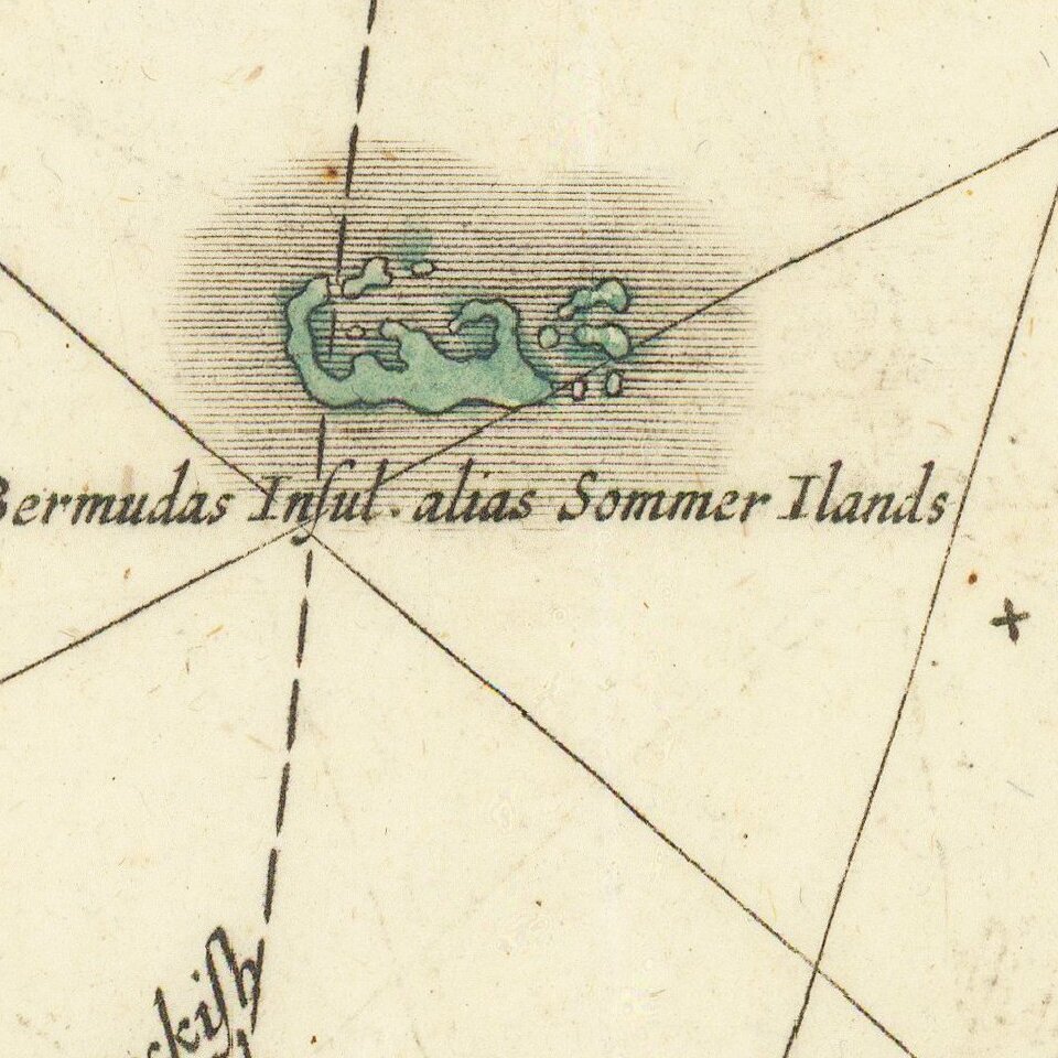 Nice example of Hondius' map of Bermuda, with decorative cartouche, compass rose, and other embellishments.