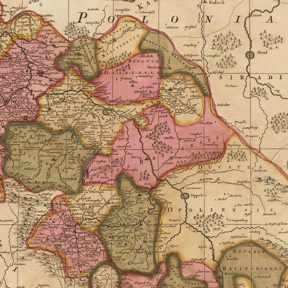 Scarce map of Silesia, in Poland, engraved in Amsterdam by Peter Schenk.