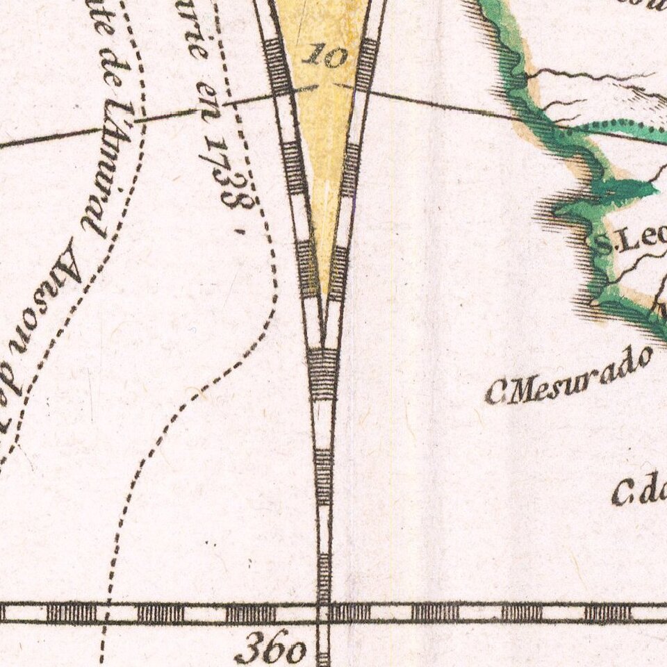 It shows the Anson expedition and other voyages that took place in the late 1730s and 1740s and also depicts a remarkable projection of Australia.
