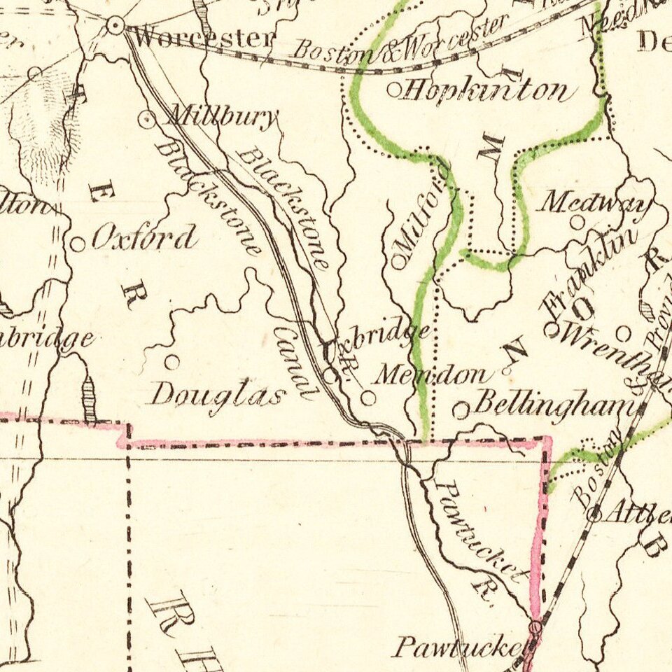 Interesting and detailed map of Massachusetts, from an early edition of Bradford's Comprehensive Atlas.