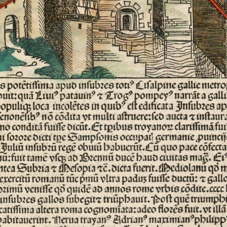 Hartmann Schedel (1440-1514) was a physician, book collector, and writer whose most famous work, the Liber Chronicarum (Nuremberg Chronicle), included some of the first printed views of many cities in Europe and across the world.