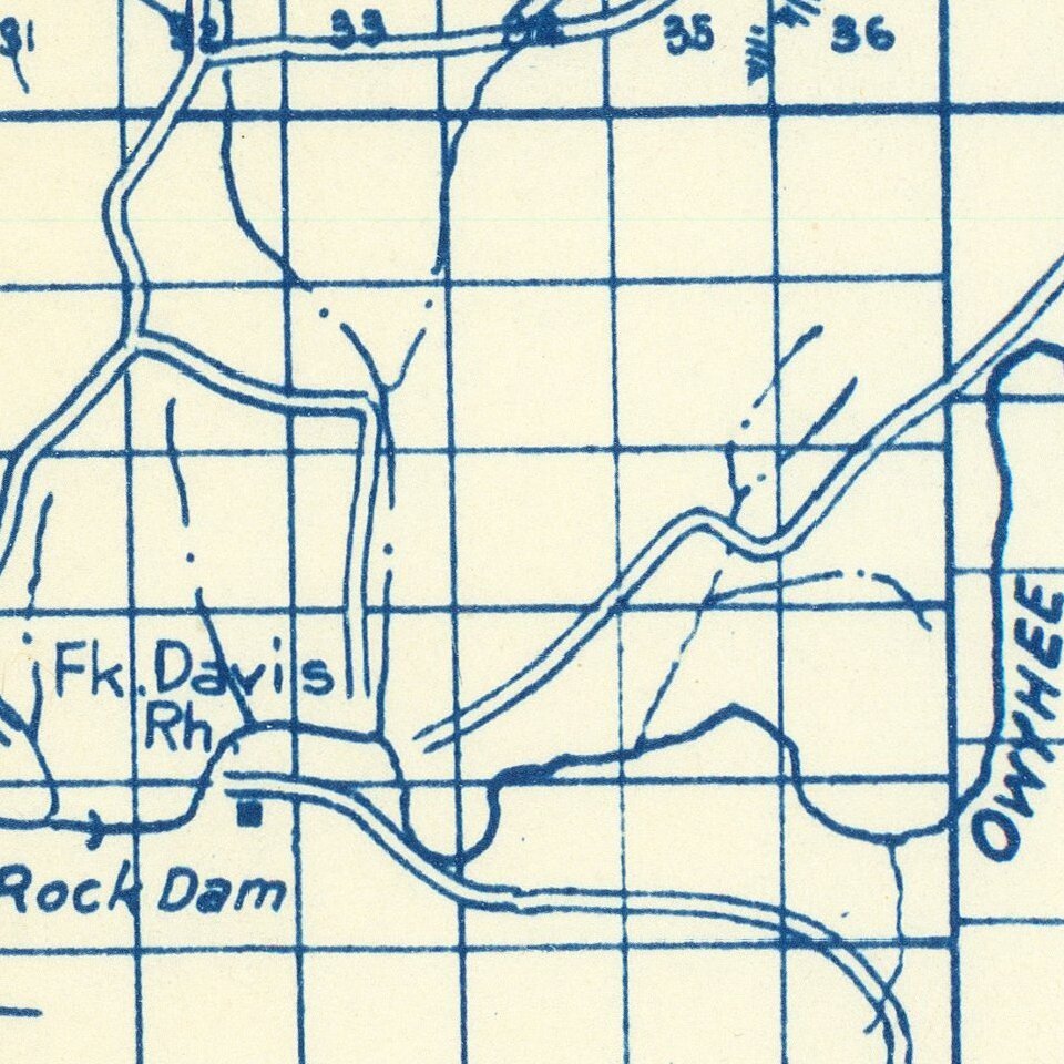 The map is extensively annotated several different colors. For example, near Owyhee Reservoir (built in 1927), a pencil annotations notes: