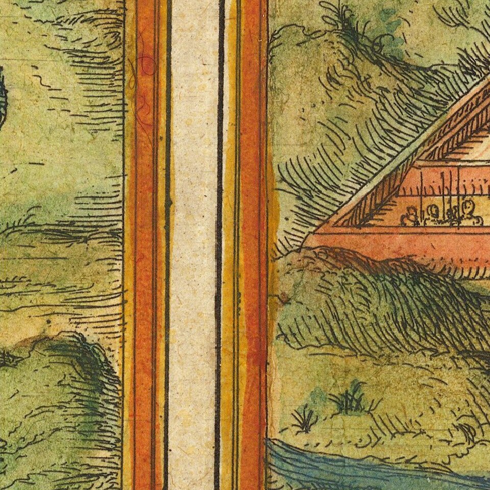 Georg Braun (1541-1622) was born and died in Cologne. His primary vocation was as Catholic cleric; he spent thirty-seven years as canon and dean at the church St. Maria ad Gradus, in Cologne. Braun was the chief editor of the Civitates orbis terrarum, the greatest book of town views ever published. His job entailed hiring artists, acquiring source material for the maps and views, and writing the text. In this role, he was assisted by Abraham Ortelius. Braun lived into his 80s, and he was the only member of the original team to witness the publication of the sixth volume in 1617.