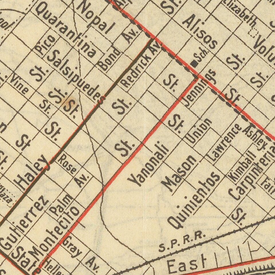 Rare early "midget" series map of Santa Barbara, published as a promotional map for Pacific-Southwest Trust & Savings Bank.