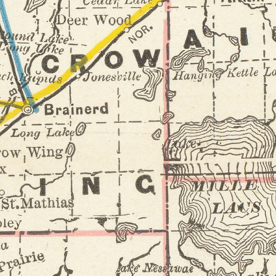 Detailed railroad map of Minnesota, published in Chicago by George Cram.
