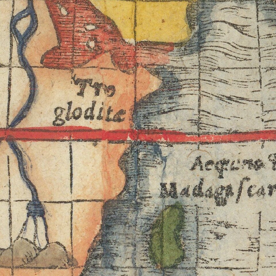 Münster’s map is a fascinating mixture of information derived from the most up-to-date sources he could access. He maintained a large network of sources, written and printed, and informants who fed him information about the shape of the world. This map reveals several of his sources.