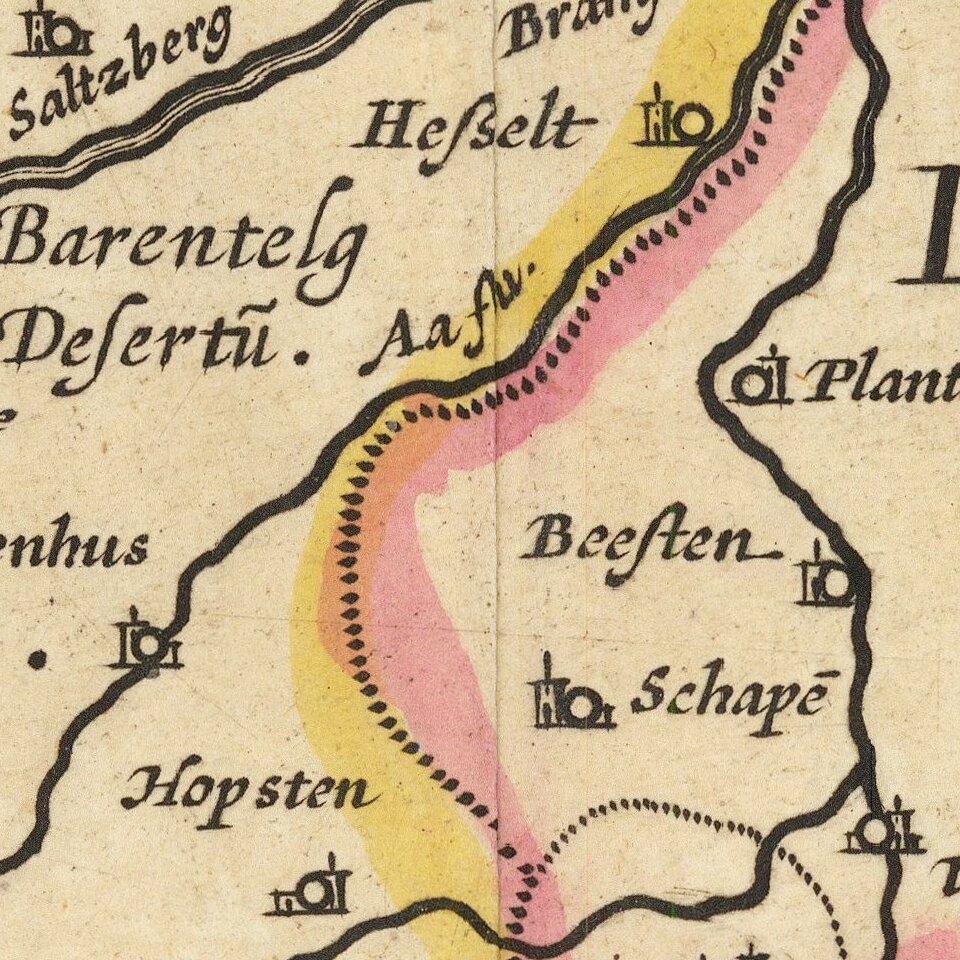 Detailed regional map of the Munster region of Germany, published by Blaeu in Amsterdam.