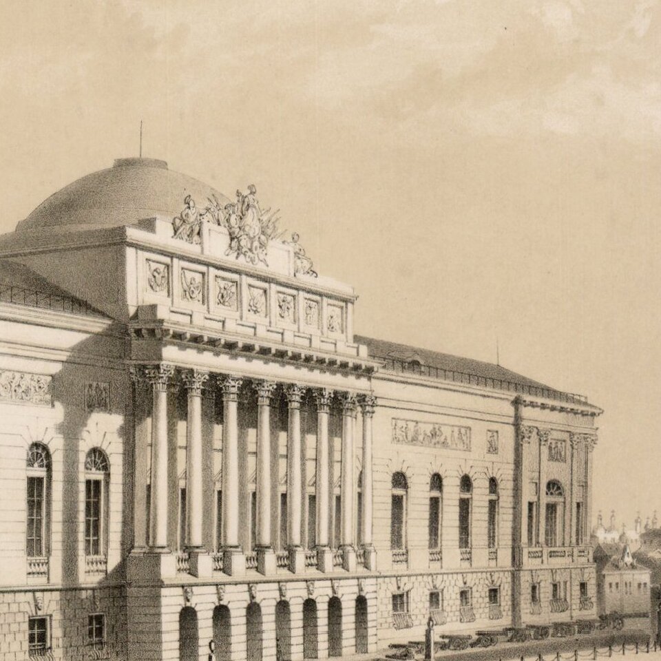 Fine lithographic view of the Kremlin Arsenal Moscow, from a series of views of Moscow and Petersburg, published by Daziaro in Moscow and St. Petersburg.