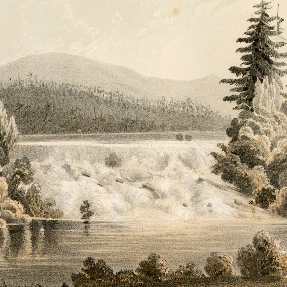 Striking view of Fall River near Camp 20, from the Pacific Railroad Surveys.