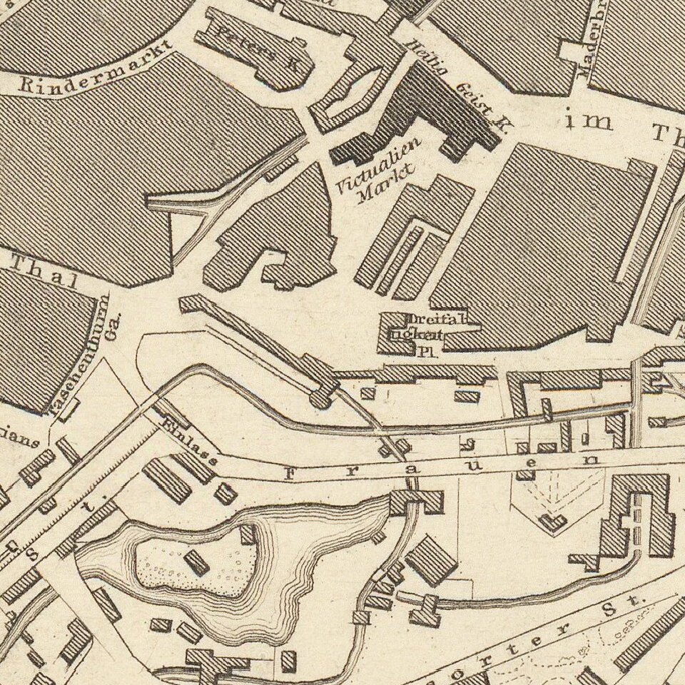 One of the best 19th Century English town plans of Munich to appear in a commercial atlas.