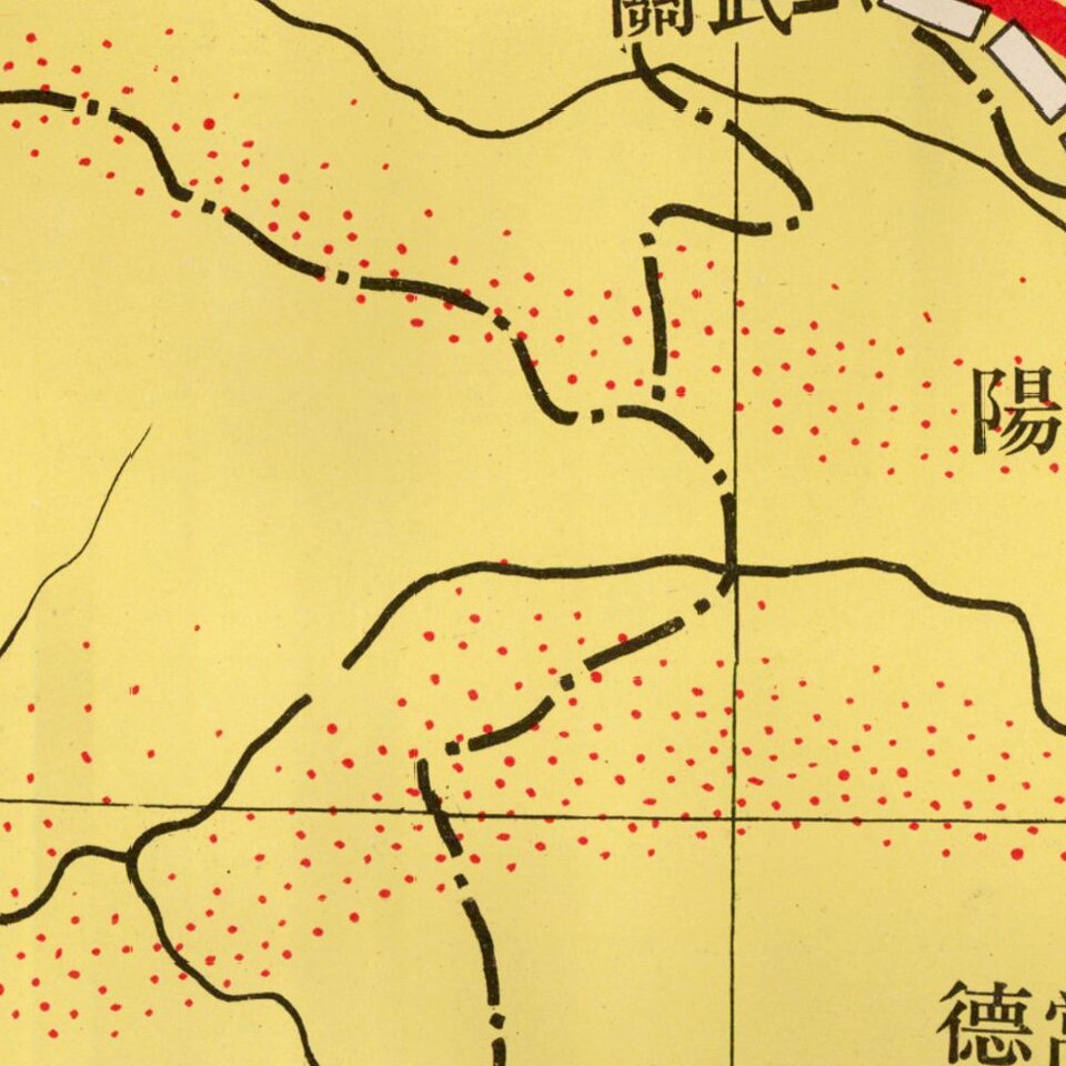 Used as teaching aids in Taiwanese schools and universities, the series constructs a narrative of Chinese history that supported the political project of the Nationalist government of Chiang Kai-shek in the 1960s. Overall, the series includes small scale maps, depicting macro-level developments affecting the Middle Kingdom, while two large-scale maps and numerous insets provide local-level details.