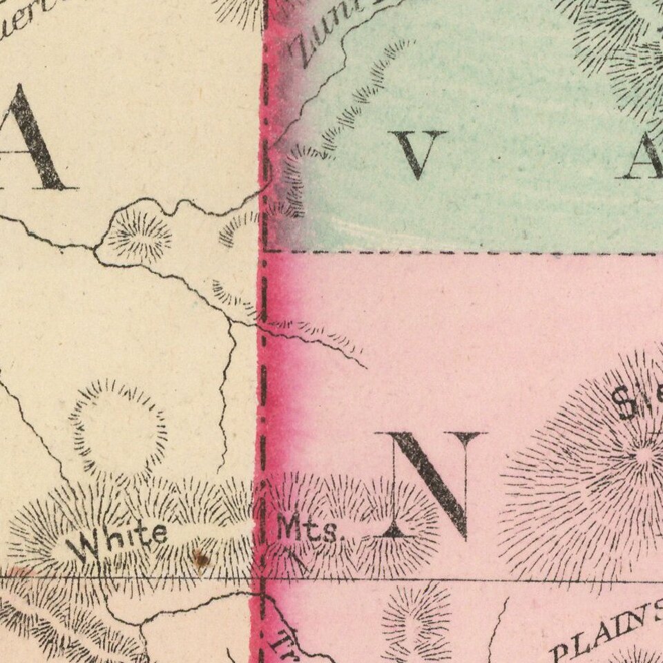 Detailed map of New Mexico and Arizona, showing a number of newly formed counties and transitional borders in both states.
