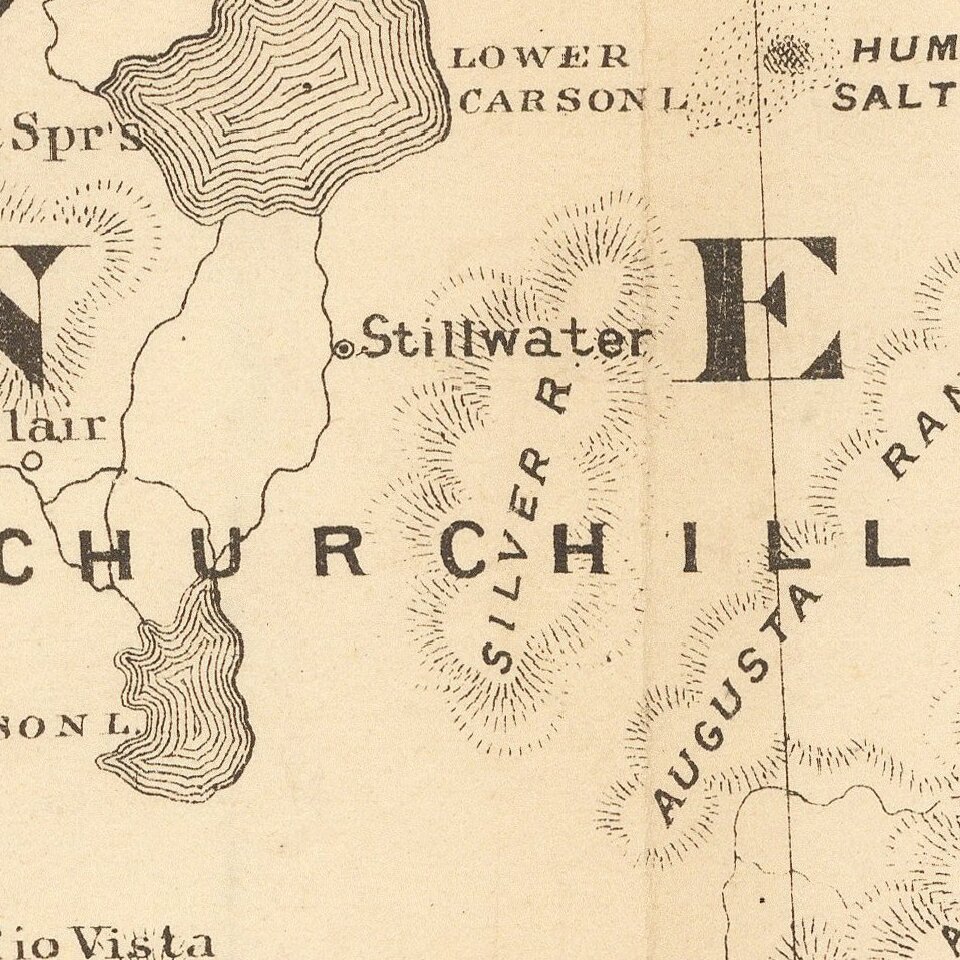 The map also shows a number of early towns, roads, mountains, lakes, mining regions and other important details.
