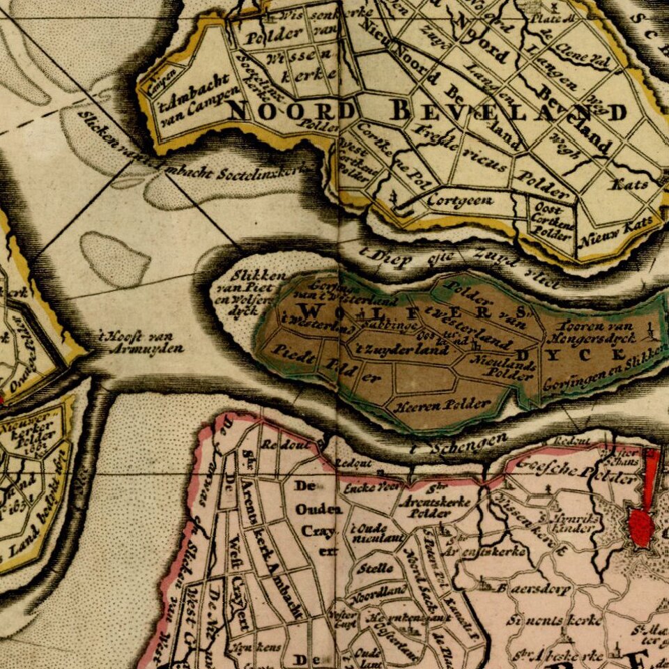 Rare map of the Province of Zeeland, with its many islands and peninsulas.
