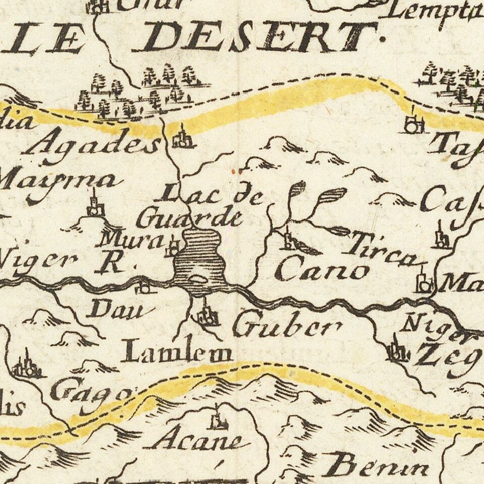 Fine miniature map of the Gold Coast, published in Paris in 1676.