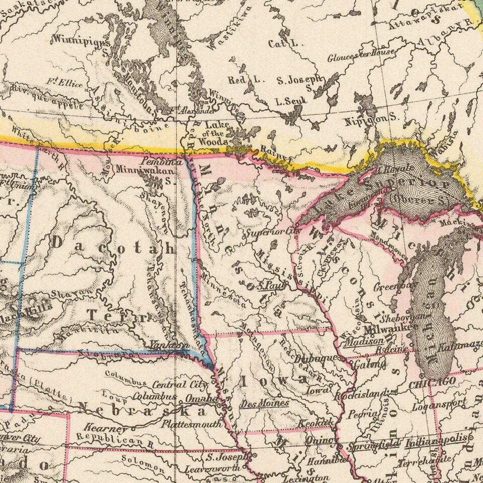 Detailed map of North America, with most of the Western Territories now named and in their proper configurations.