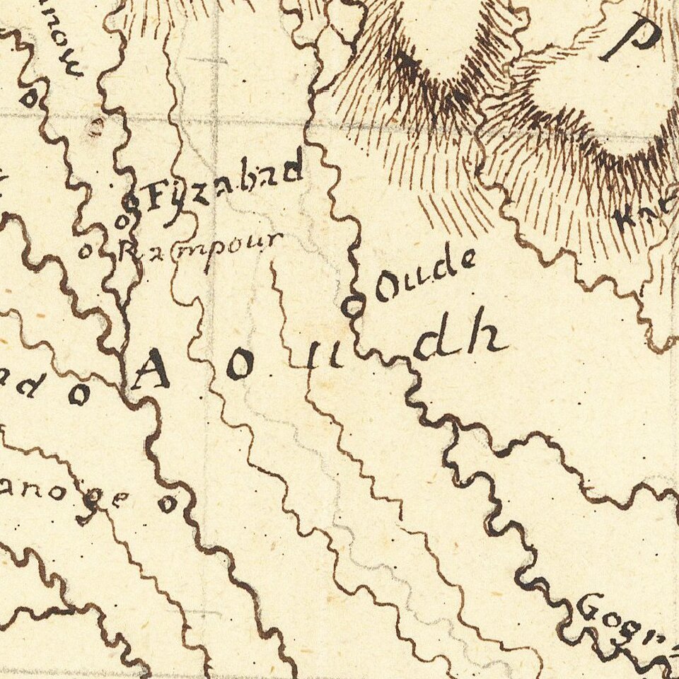 Finely executed manuscript map of the northern part of India, drawn by an anonymous French hand.