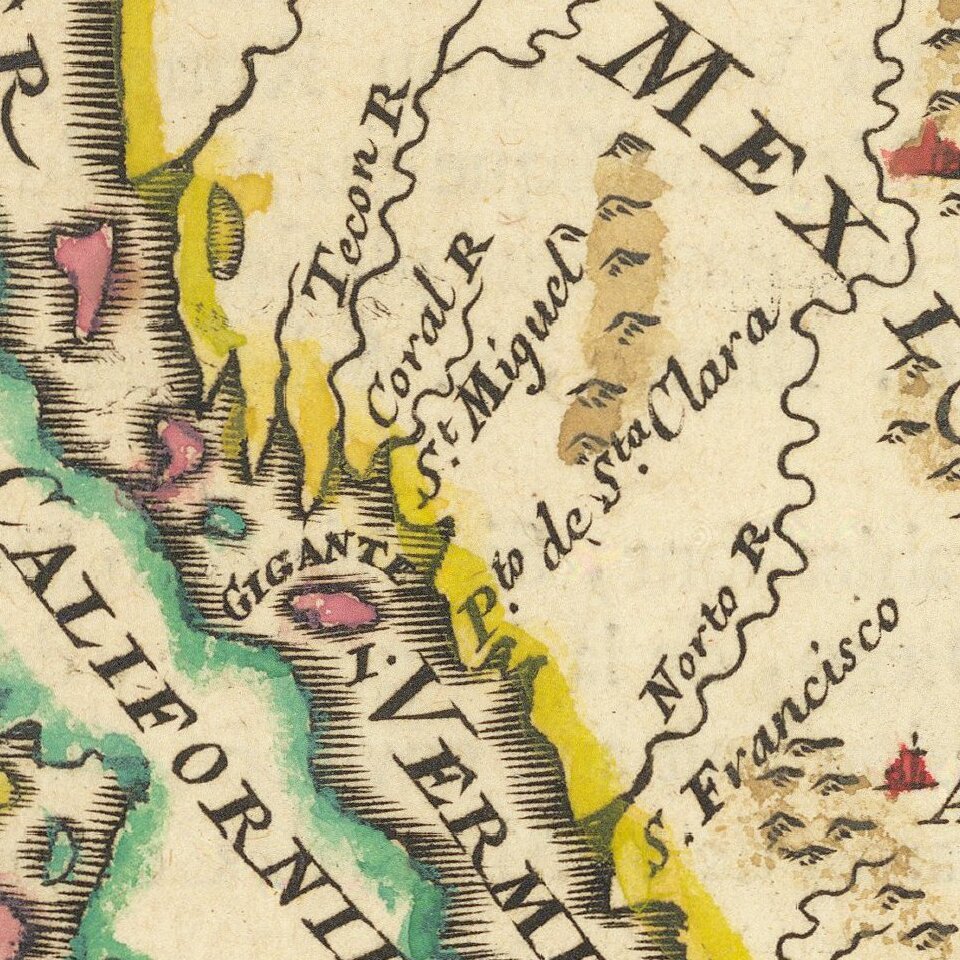 The island of California became a fixture on mid- and late-seventeenth century maps. The island suggested possible links to the Northwest Passage, with rivers in the North American interior supposedly connecting to the sea between California and the mainland. Furthermore, Francis Drake had landed in northern California on his circumnavigation (1577-80) and an insular California suggested that Spanish power in the area could be questioned.