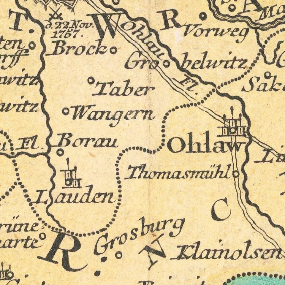 Detailed map of the region of Silesia, centered on Breslau (Wroclaw).
