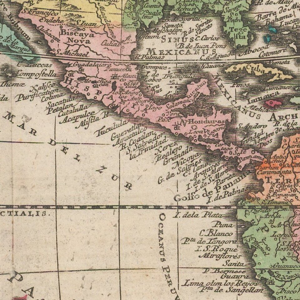 The map includes some early western Indian tribal names, of which the most interesting is the Apaches de Novajo, which are pushed north of Apaches de Xila, both of which are considerably north of the areas inhabited by the Apache and Navajo Indians. The projection of Florida is also quite interesting.