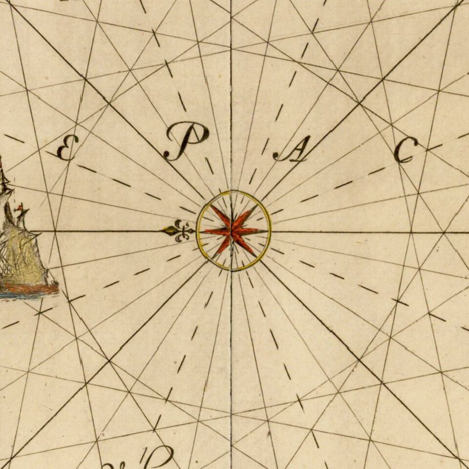 Nice example of this marvelous sea chart first produced by Frederick De Wit in 1675 and later issued in the 18th Century by Renard (1715) and Ottens (1745).