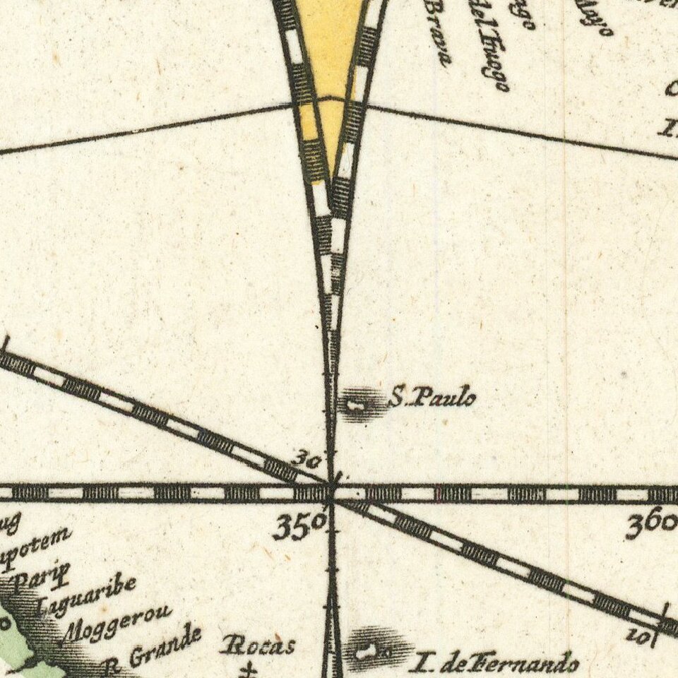 The map is similar to Visscher's World map of 1659 (Shirley 406), only with the Straits of Anian being reduced to cover only 10 degrees. The surrounding decorations are completely redone and include vivid scenes of the signs of the Zodiac along with Cherubs and other heavenly figures.