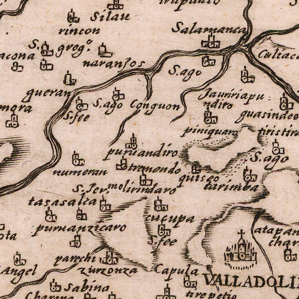 The map is dedicated to Marcos Ramírez de Prado y Ovando (1592 - 1667), a Roman Catholic prelate who served as Archbishop of Mexico (1666-1667), Bishop of Michoacán (1639-1666), and Bishop of Chiapas (1632-1639). On May 30, 1639, he was selected by the King of Spain and confirmed by Pope Urban VIII, as Bishop of Michoacán.