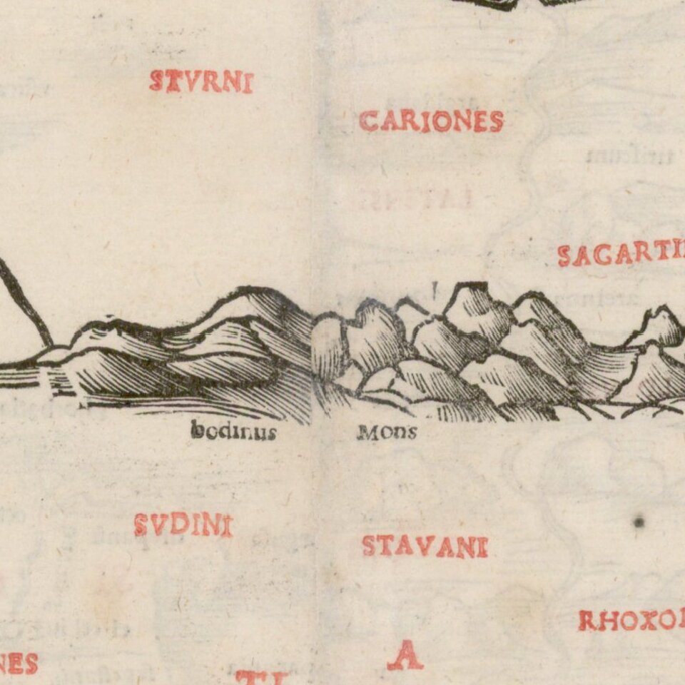 Sylvanus's map is one of the earliest obtainable maps of the region and the first printed in two colors.
