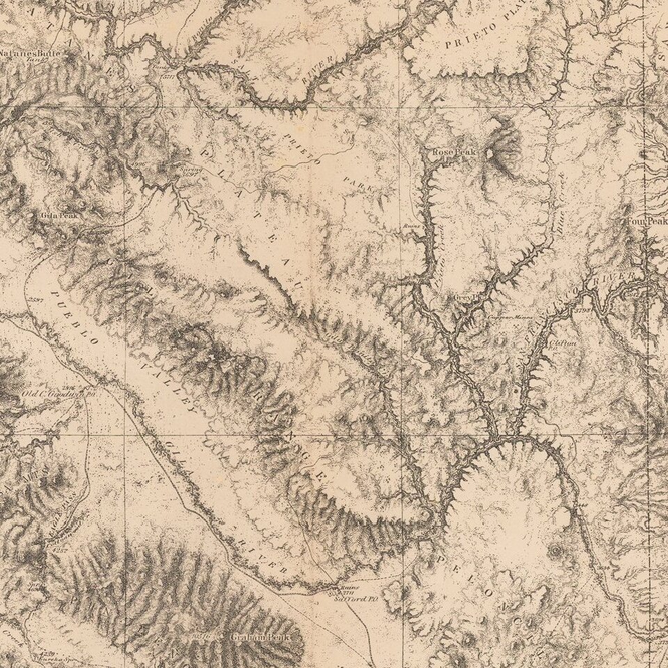 The map was generated during the Wheeler Survey. The Wheeler Survey was a survey of a portion of the United States lying west of the 100th meridian. It comprised multiple expeditions, and was supervised by First Lieutenant (later Captain) George Montague Wheeler. The survey team included Lieutenant (later Brigadier General) Montgomery M. Macomb.