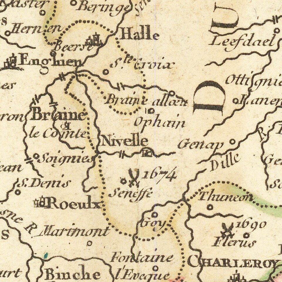 Decorative map of the Southern part of the Low Countries, published in Paris.