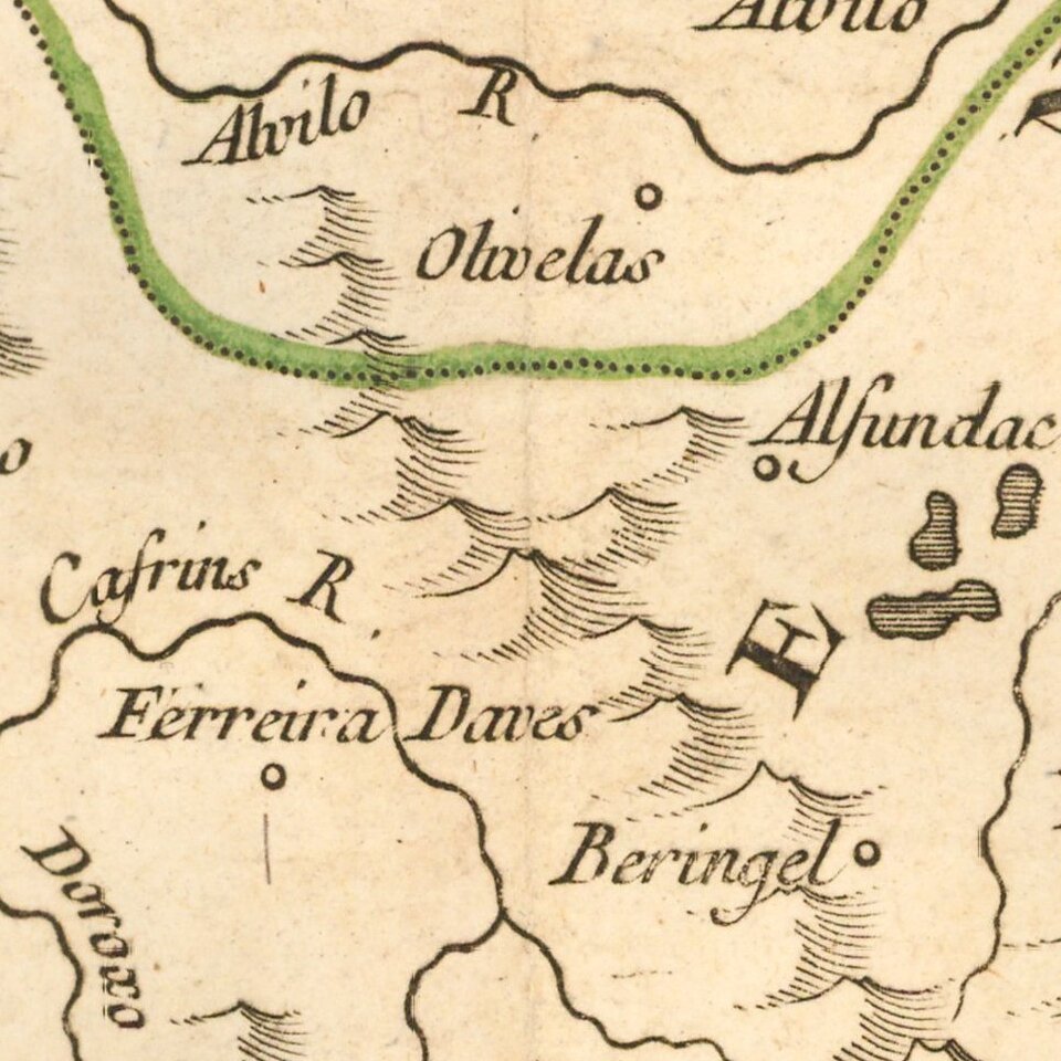 Nice example of the first edition of De Vaugondy's map of the southern part of Portugal.