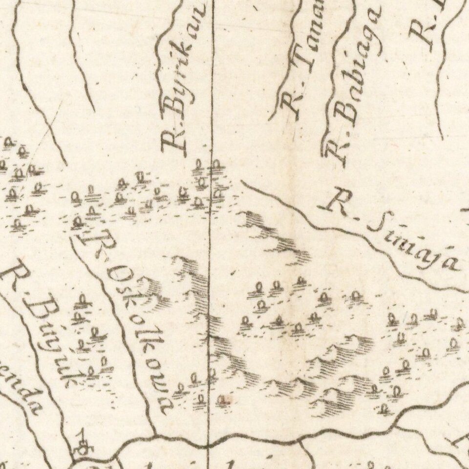Based upon source material from De Vaungondy and De L'Isle's Russian Atlas.