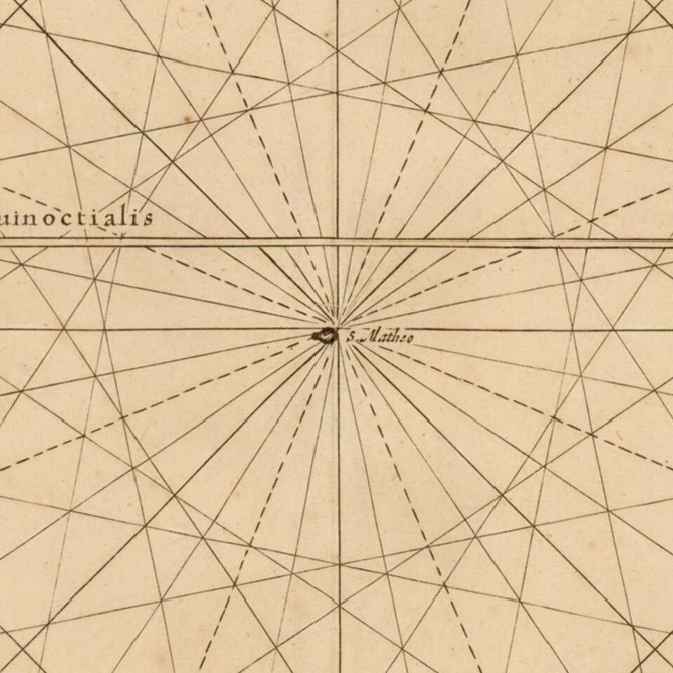 The map includes Rhumb Lines, 2 sailing ships and compass rose. The map also extends west to the islands of St. Helena and Ascencion.