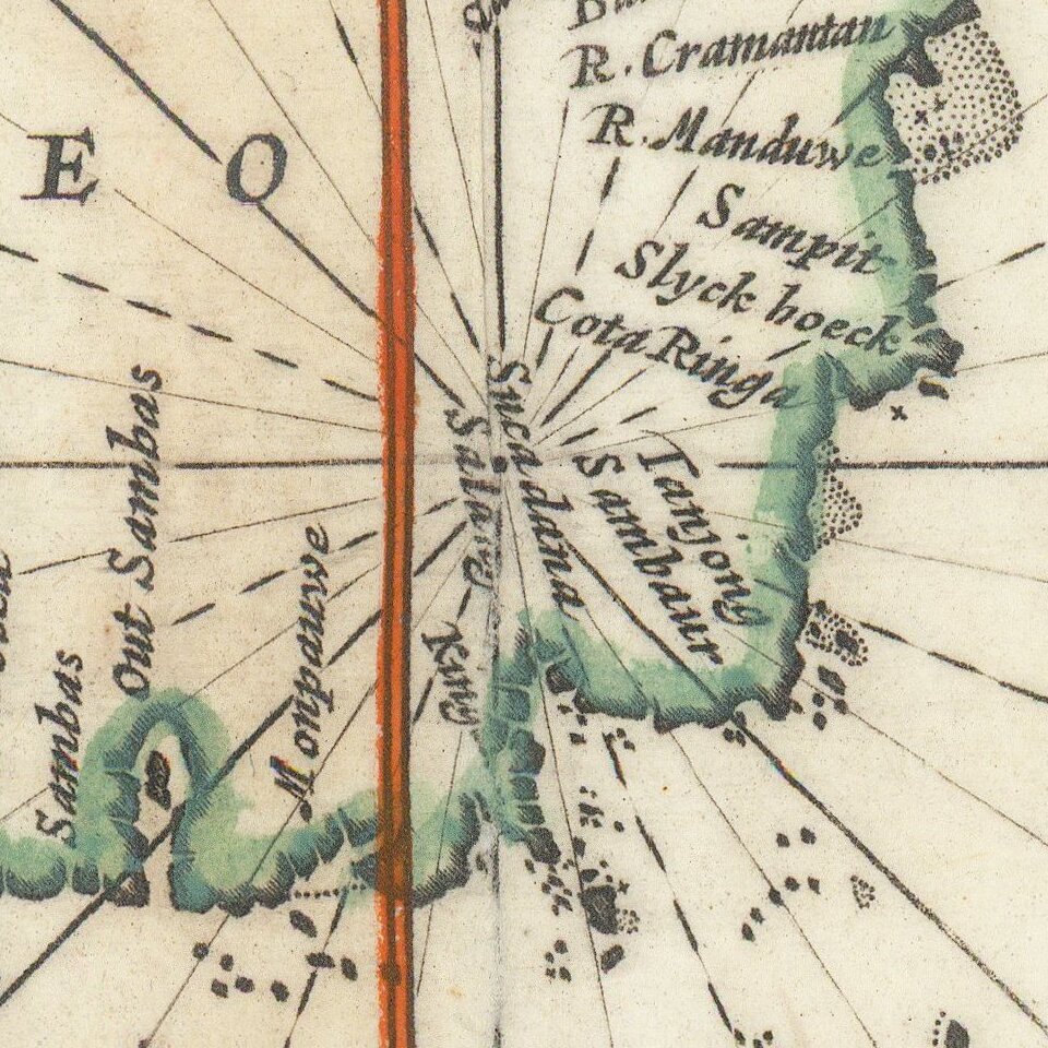 The chart is the second of two charts encompassing the sea routes from Southern Africa to the Far East, as typically followed by ships of the Dutch East India Company in this period. As the second and easternmost sheet, the chart shows the regions from Cape Comorin (Southern India) to Japan. The discoveries made by Tasman in Northern Australia in 1644 during the course of his second voyage are included.