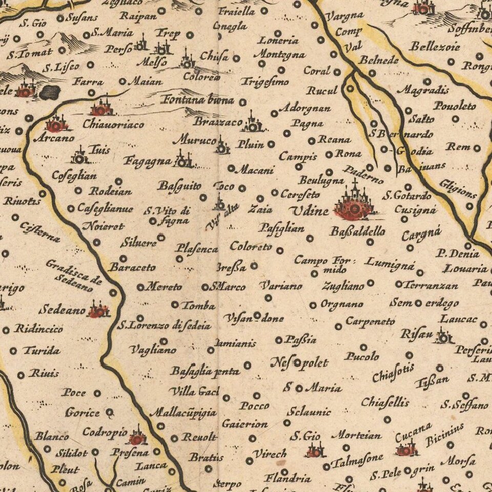 Nice old color example of Jansson's maps of Friuli and the Gulf of Trieste.