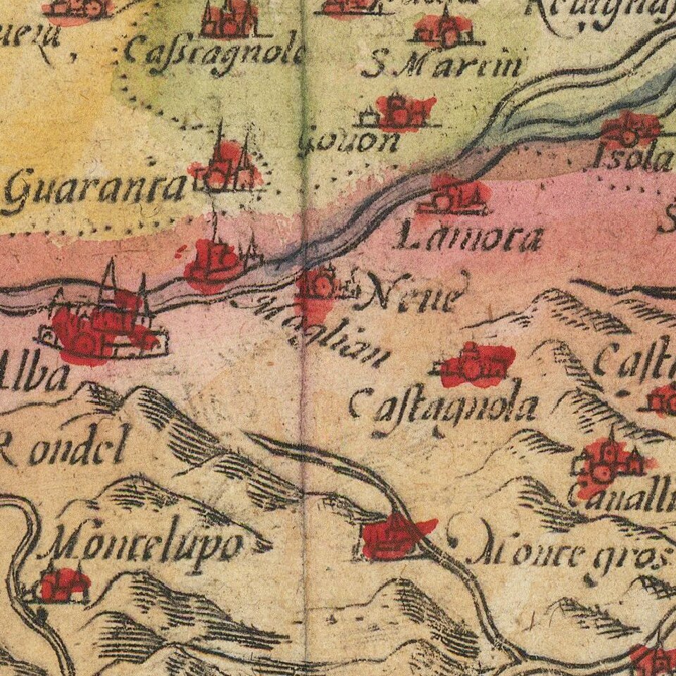 Finely colored example of this detailed map of the Piedmont region, from Santa Margarita, Genoa and Monaco to Milan, centered on Turin, from Ortelius' Theatrum Orbis Terrarum, the first modern atlas of the world.