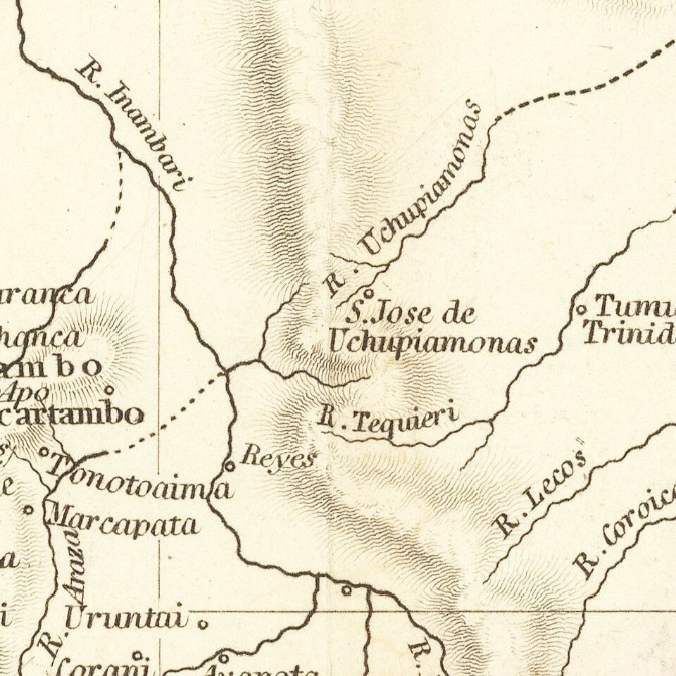 A marvelous highly detailed map of Peru and Bolivia, colored by regions.