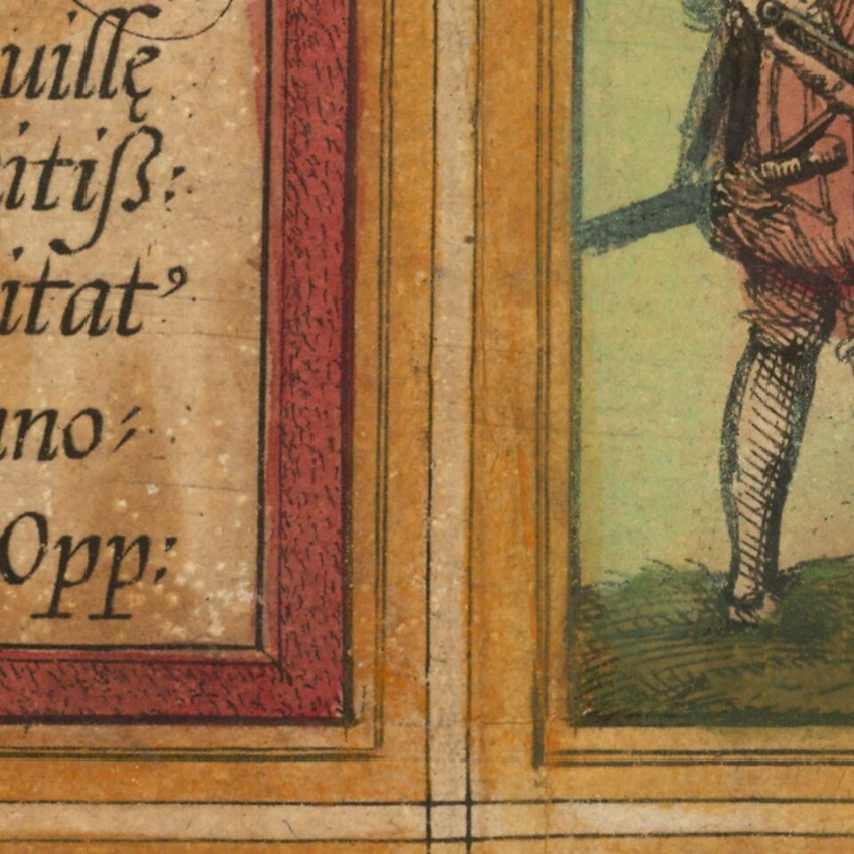 Georg Braun (1541-1622) was born and died in Cologne. His primary vocation was as Catholic cleric; he spent thirty-seven years as canon and dean at the church St. Maria ad Gradus, in Cologne. Braun was the chief editor of the Civitates orbis terrarum, the greatest book of town views ever published. His job entailed hiring artists, acquiring source material for the maps and views, and writing the text. In this role, he was assisted by Abraham Ortelius. Braun lived into his 80s, and he was the only member of the original team to witness the publication of the sixth volume in 1617.